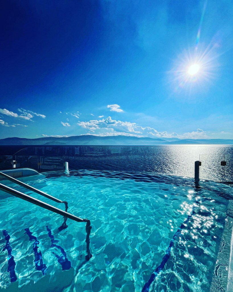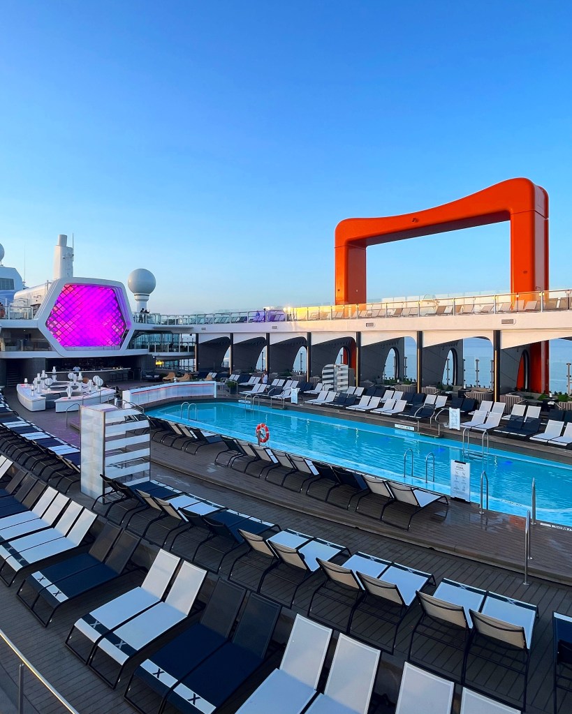Our favourite pools onboard Celebrity Beyond have got to be the two plunge pools which you will find on deck 15 adjacent to The Rooftop Garden. They hang slightly over the ship offering phenomenal views at every turn. You will also find the main pool on deck 14 (The Resort Deck), as well as the indoor adults only pool in the Solarium complete with two whirlpools. Two martini shaped hot-tubs can be found on deck 15 overlooking the main pool. If you’re lucky enough to have access to The Retreat then yes there’s another pool for you to use too! There’s a pool option for everyone!