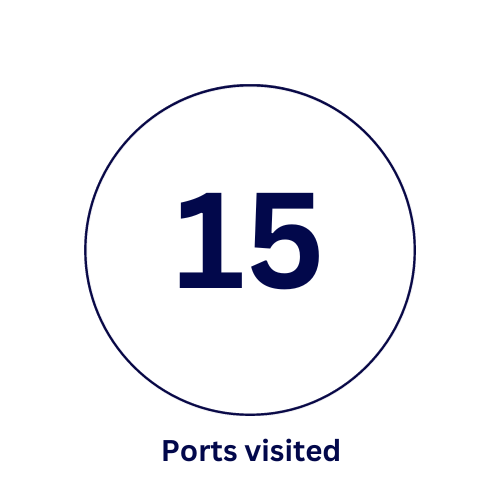 Ports visited: Civitavecchia, Katakolon, Corfu, Dubrovnik, Kotor, Messina, Naples, Livorno, Palma de Mallorca, Olbia, Piombino, Villefranche, Palamós, Santa Cruz, Las Palmas, Arrecife, Peurto del Rossario and Funchal.