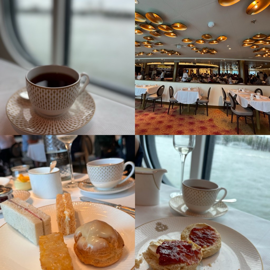A staple of a Cunard voyage and a quintessential British tradition. At 15:00 the procession begins with the waiters bringing out the teapots and pouring tea at each table, which is then followed by a selection of sweet and savoury delights, not forgetting the scones. The tea continues to be refilled as you make your way through the delicacies you’ve been served; the onboard orchestra play in the background to elevate the experience even further.