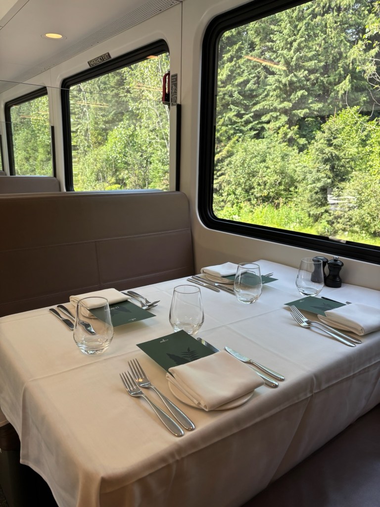 We opted for the Gold Leaf package which meant our assigned carriage was a double decker with a domed glass roof to make the most of the stunning views, a separate dining area and an exclusive viewing platform.