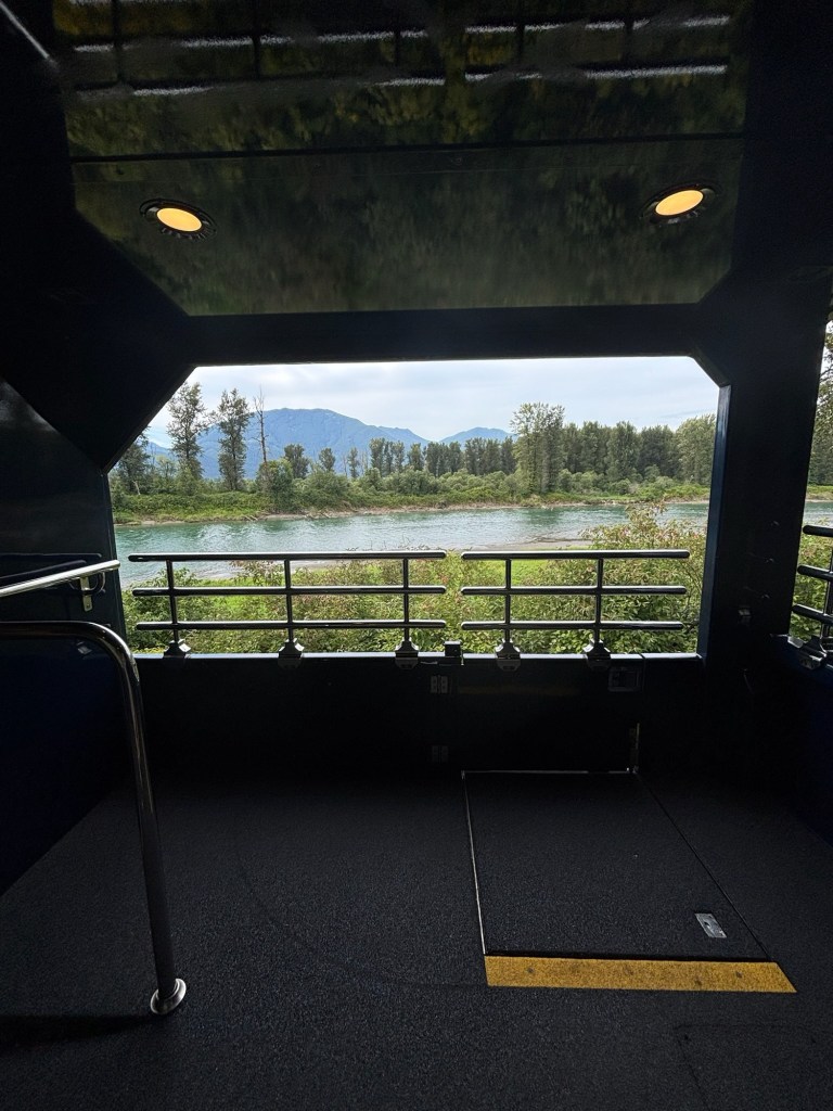 Embarking after a couple of days in the mountain town of Jasper, the adventure began with the Rocky Mountaineer team picking us up from our hotel for the very short transfer down to the station to board the train. No need to check in early, the team brought our boarding passes and issued them upon collection from our hotel which was the Jasper Inn and Suites. Once our bags were tagged, we boarded the coach and we were on our way.